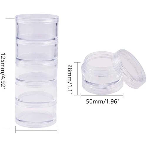 Stackable plastic cutter head case that holds 5 cutter heads with felt pads in each section.