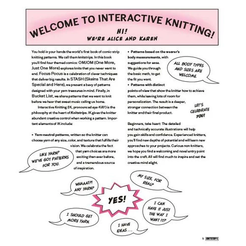 Inspired, original, and laugh-out-loud funny, knitstrips are patterns and knitting instruction mixed with advice and humorous commentary—and presented in illustrated comic book panels.