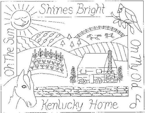 My Old Kentucky Home rug hooking pattern on Linen 25″ x 32″ by Melissa Elliot.