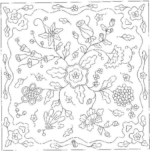 Priscilla’s Garden rug hooking pattern on Linen 50″ x 50″ by Melissa Elliot.