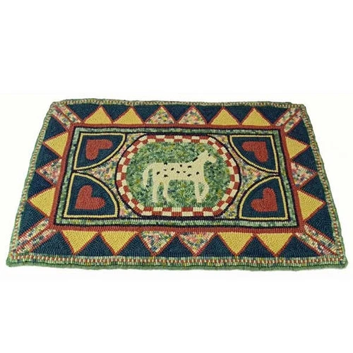 Shaker Horse and Hearts rug hooking pattern on Linen 21″ x 33″ by Melissa Elliot.